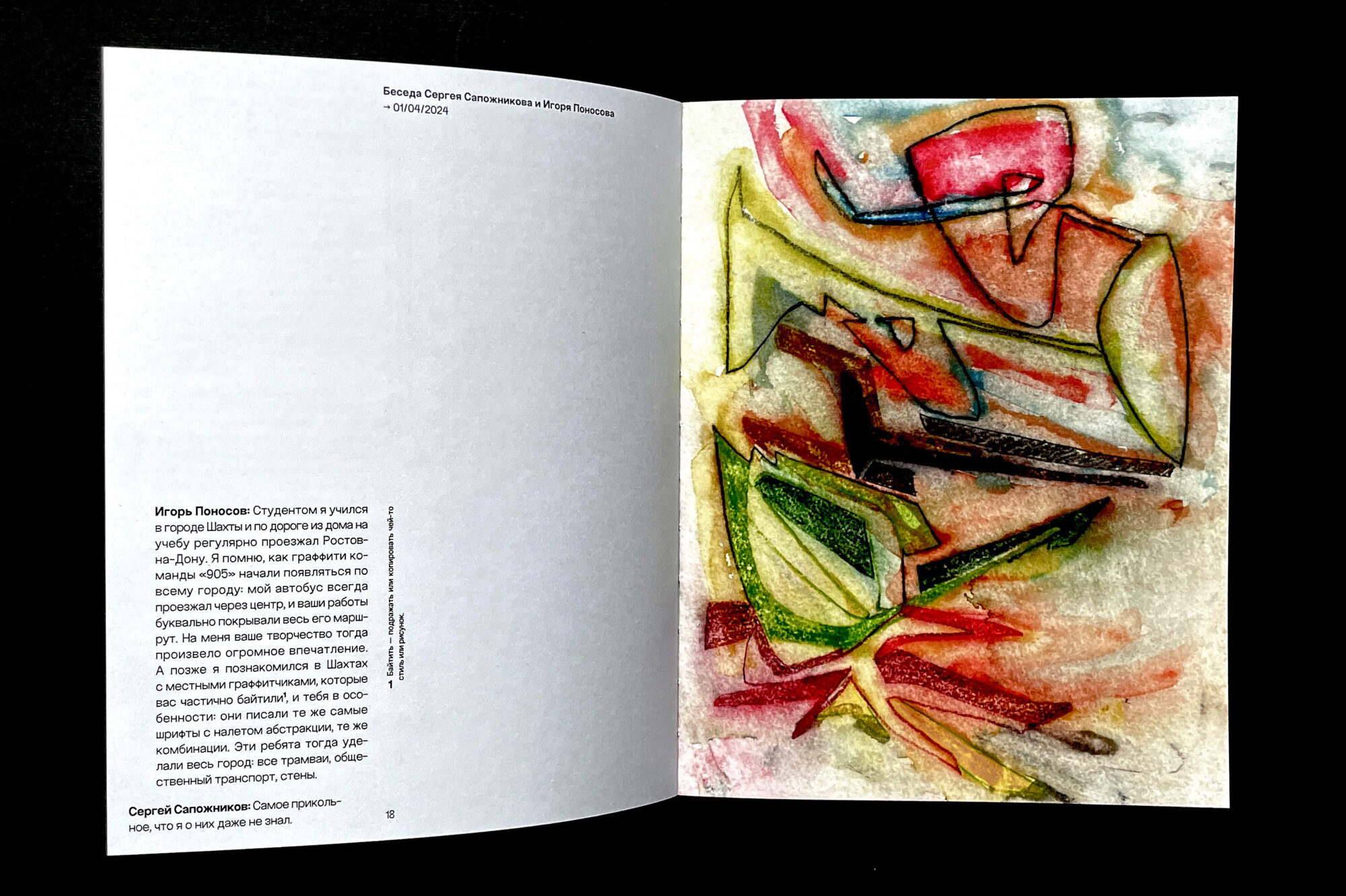 This book is not just a nostalgic look back at a youthful passion that sparked a subsequent artistic practice, but also a concise excursion into the history of the Rostov graffiti scene of the early 2000s, of which Sergey Sapozhnikov was an active participant.